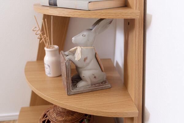 ・空間を有効活用できるこのコーナーラックは、書籍や小物をおしゃれにディスプレイし、心地よい空間を演出します。機能的なデザインは、インテリアアクセントとしてもお楽しみいただけるアイテムです。