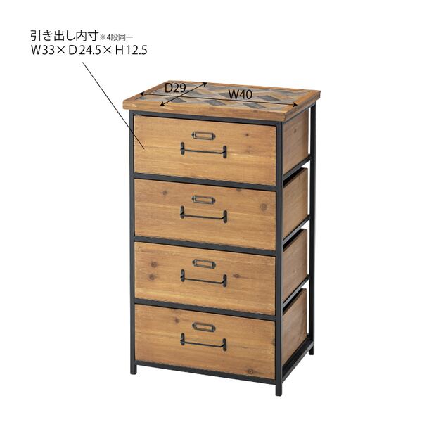 ・3段の収納スペースを備えたこのチェストは、衣類や小物をすっきりと整理し、美しいインテリアを実現します。機能的なデザインは、空間を有効活用するとともに、スタイリッシュなアクセントとしても楽しめるアイテムです。