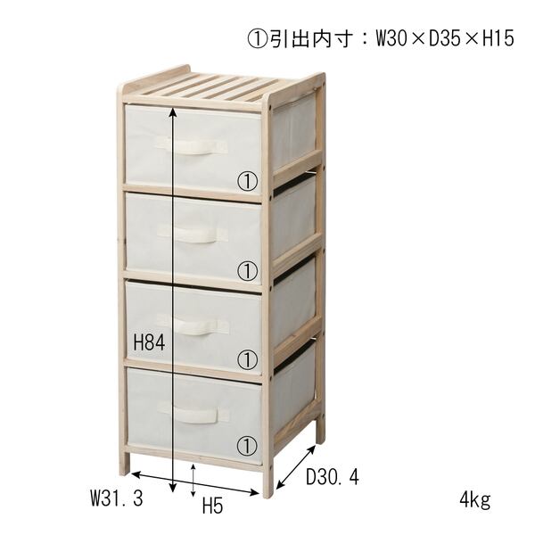 MITASインテリア リリー チェスト4Dストレージ ナチュラル LFS-374NA