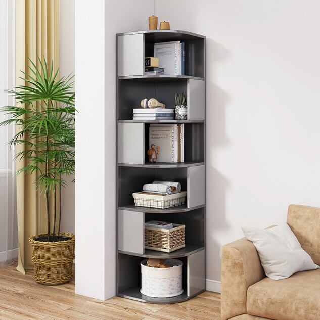 コーナーラック 本棚 コーナー収納 リビング オフィス キャビネット ブックシェルフ 4段/ホワイトミックス/40*40*118cm