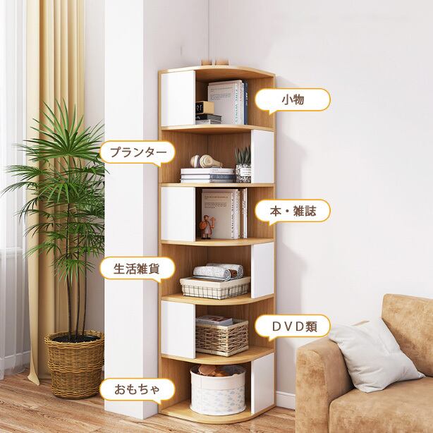 コーナーラック 本棚 コーナー収納 リビング オフィス キャビネット ブックシェルフ 5段/ホワイトミックス/40*40*147cm