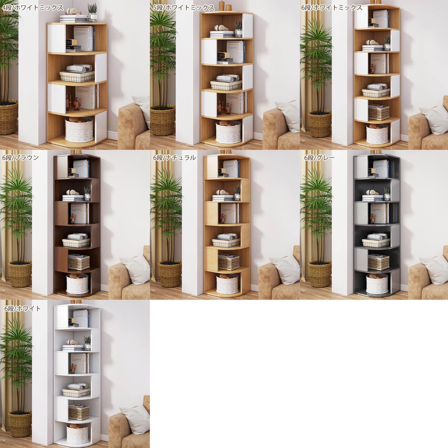 コーナーラック 本棚 コーナー収納 リビング オフィス キャビネット ブックシェルフ 6段/40*40*176cm